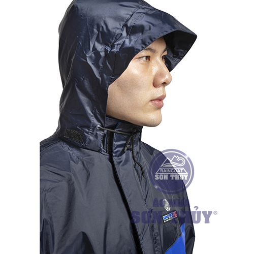 - Quy cách: Bộ quần áo mưa được may bằng 02 lớp vải với lớp ngoài là vải nilon tráng nhựa PVC dày 0.22mm- đường may 210 sợi/cm; bên trong là lớp vải lót để giữ ấm. Cổ tay bo chun giúp nước mưa không thể tràn vào trong tay áo, kể cả khi bạn giơ tay lên làm việc. Có băng phản quang sau lưng giúp dễ dàng phát hiện khi làm việc ban đêm. Bộ áo mưa này có 03 size cho bạn chọn lựa, bao gồm: L, XL và XXL. Tất cả mọi đường may trên các sản phẩm Sơn Thủy đều được dán nhựa chống thấm cẩn thận, đảm bảo chống thấm tuyệt đối. Có nẹp máng nước ngăn nước thấm qua khóa.