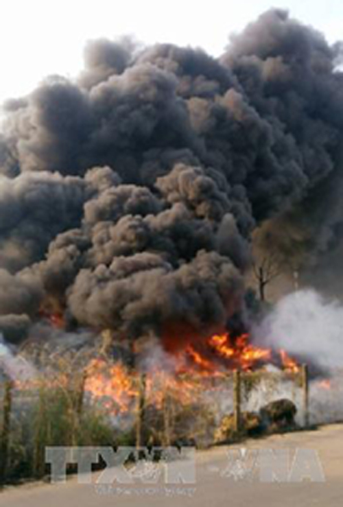 Khoảng 17 giờ, 10 xe chữa cháy và hàng chục chiến sỹ đã có mặt tại hiện trường khống chế ngọn lửa, không cho đám cháy lan sang nhà người dân xung quanh.